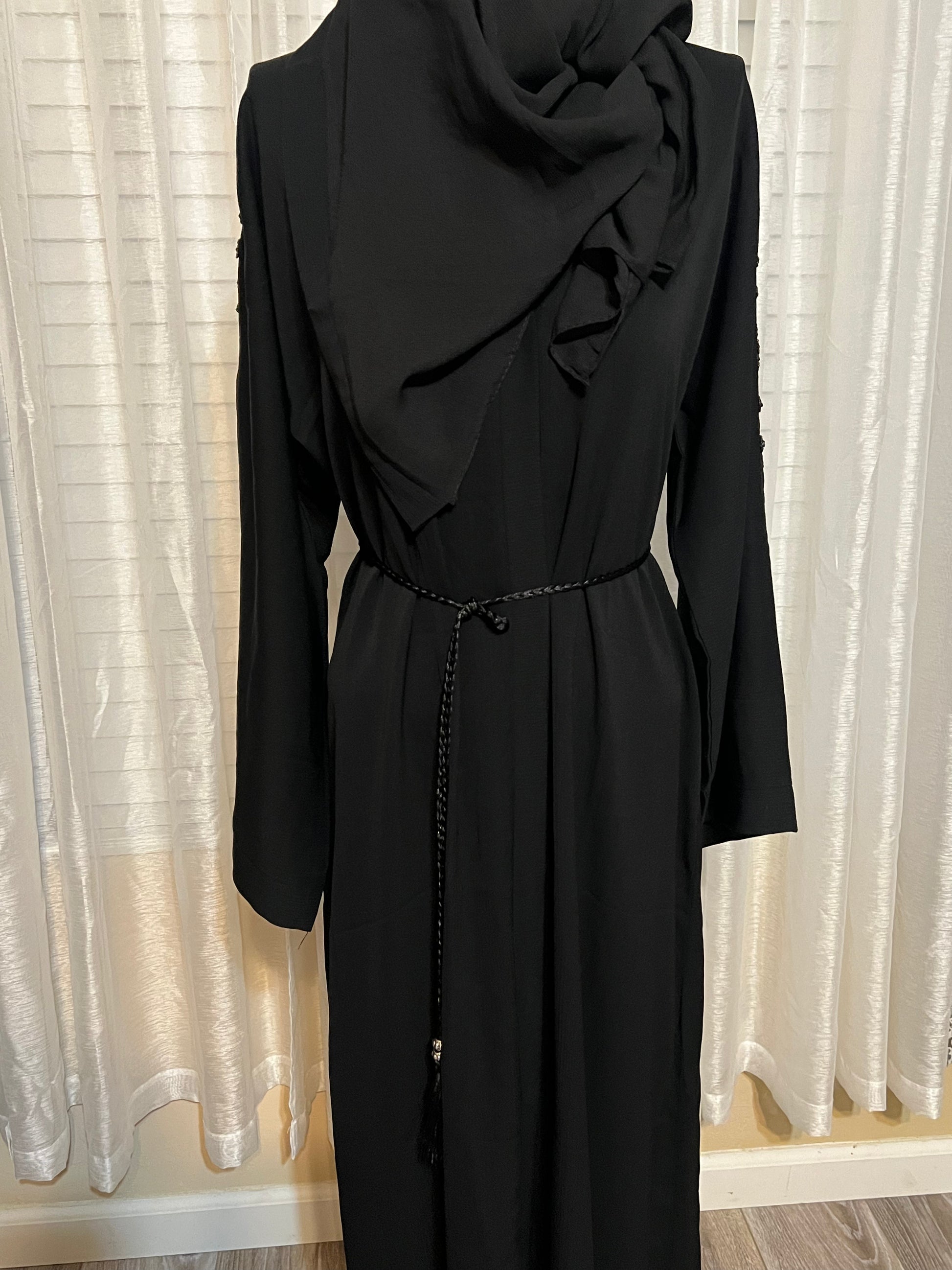 Elegant Black Abaya with Intricate Hand Embroidery size 52